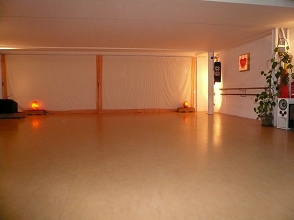 170 qm, Schwingboden, verhängbare Spiegelwand, Raumhöhe: > 3,30 m, schöne Atmosphäre, ruhig, Lautstärke aber kein Problem, bequeme Stühle vorhanden, gute Musikanlage, Matten, Kissen, Flipchart, Tageslicht. Beamer und Leinwand auf Wunsch gegen Aufpreis.